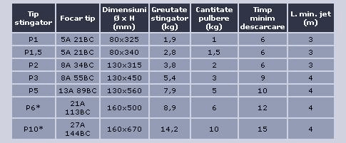 1. Tipurile de stingatoare notate cu asterisc (*) sunt prevazute cu furtun de refulare asamblat cu duza de evacuare.